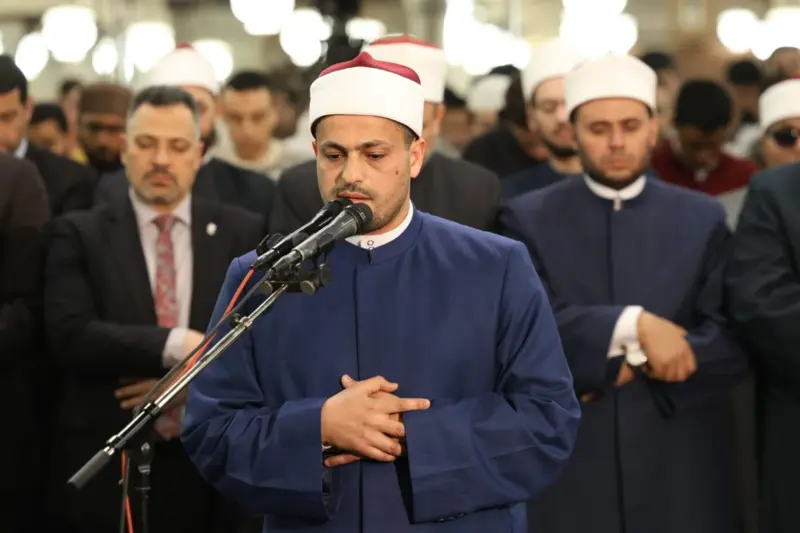 Особенности чтения в девятую ночьМолитва иша была совершена с чтением аятов из суры «Аль-Араф» в передаче Хафс от Асима. Таравих также включала чтение из той же суры в различных канонических передачах, включая Ибн Вардана от Абу Джафара аль-Мадани, Ибн Заквана от Ибн Амира аш-Шами и Шу’бу от Асима аль-Куфи. Молитву таравих возглавили доктор Махмуд Аззази, шейх Рамадан Халиф и шейх Мухаммад Исмаил Нур ад-Дин, а молитвы шаф‘ и витр — шейх Ахмад Ануар. Трансляция и информационная поддержкаМедиацентр Аль-Азхара осуществляет прямую трансляцию молитв на официальных цифровых платформах учреждения и странице мечети в Facebook, обеспечивая широкую аудиторию возможностью присоединиться к богослужениям онлайн. Комплексная программа РамаданаВ течение месяца в Аль-Азхаре реализуется масштабная программа, включающая: